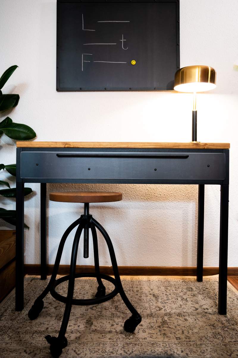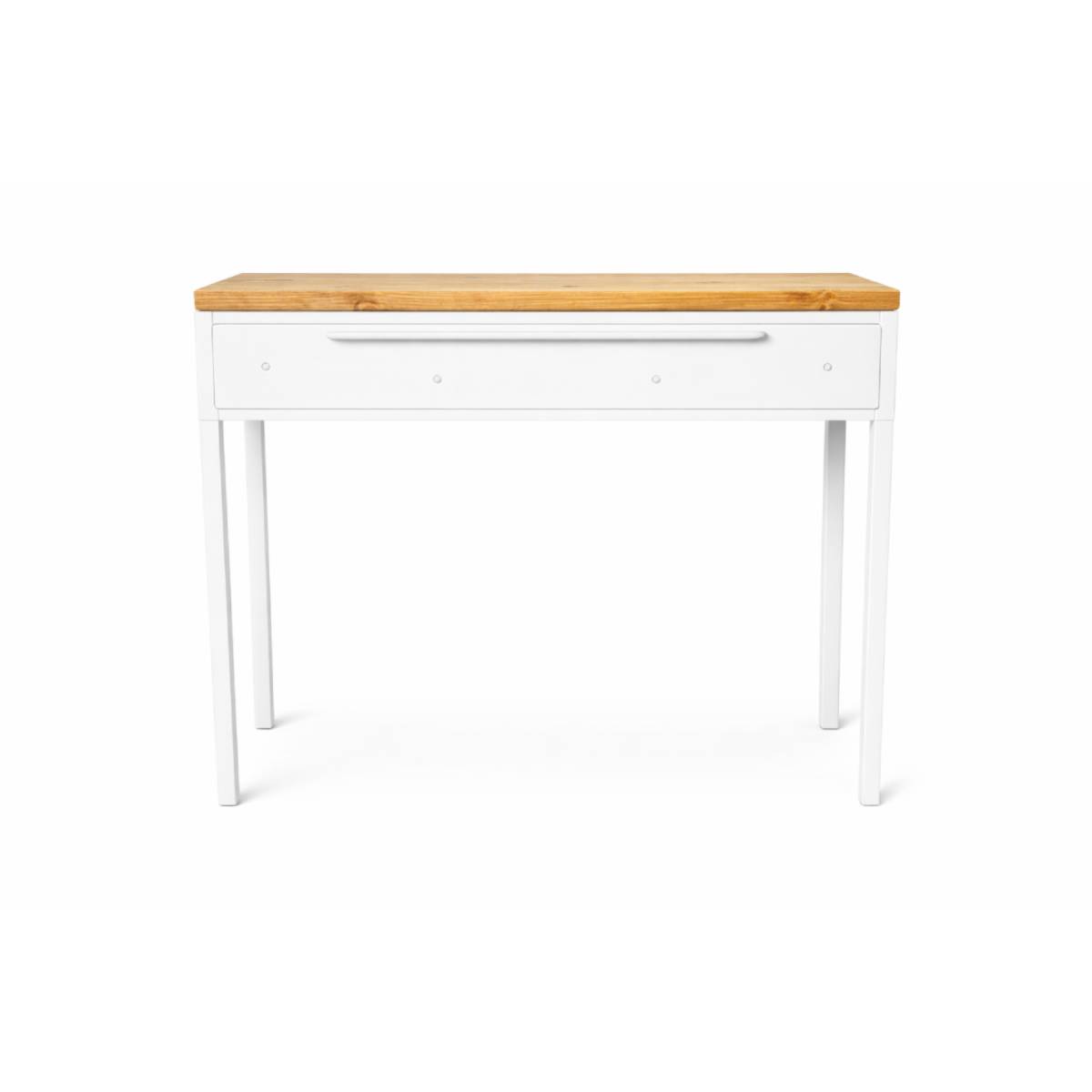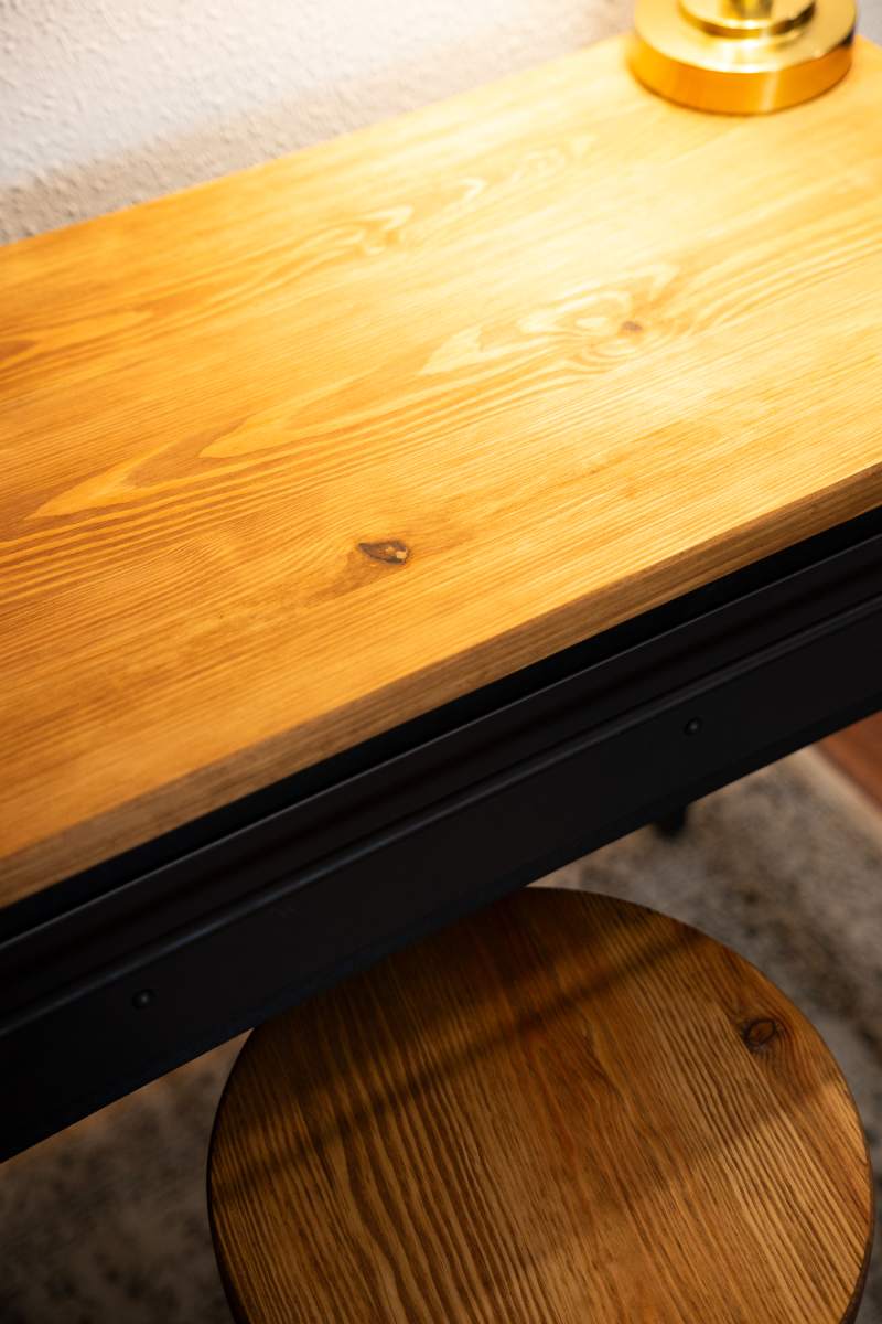 - Solidna podstawa Twoich działań: Blat z naturalnego drewna sosnowego o grubości 28 mm spoczywa na stabilnym, stelażu z pełnych profili stalowych. To połączenie gwarantuje, że biurko stoi pewnie, nie drga i służy Ci przez długie lata, niezmiennie zachwycając swoją prostotą.