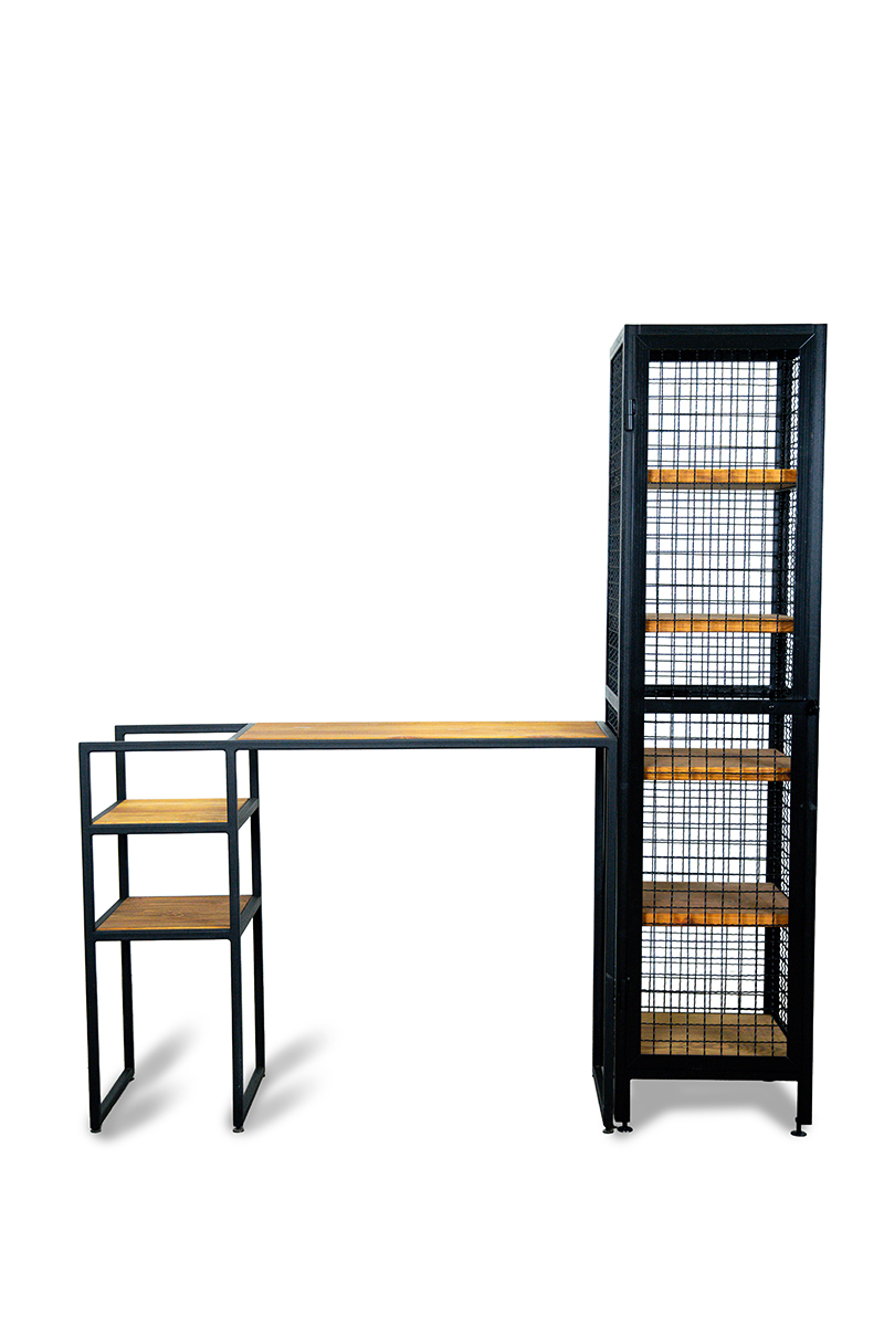 Sercem konstrukcji jest precyzyjnie spawany, stalowy stelaż. Dzięki otwartej strukturze, mebel wydaje się unosić w powietrzu, co czyni go idealnym wyborem nawet do mniejszych pomieszczeń. Zestawienie surowego metalu z ciepłym odcieniem naturalnego drewna tworzy balans, który ociepli surowe, betonowe ściany lub doda pazura klasycznym aranżacjom.