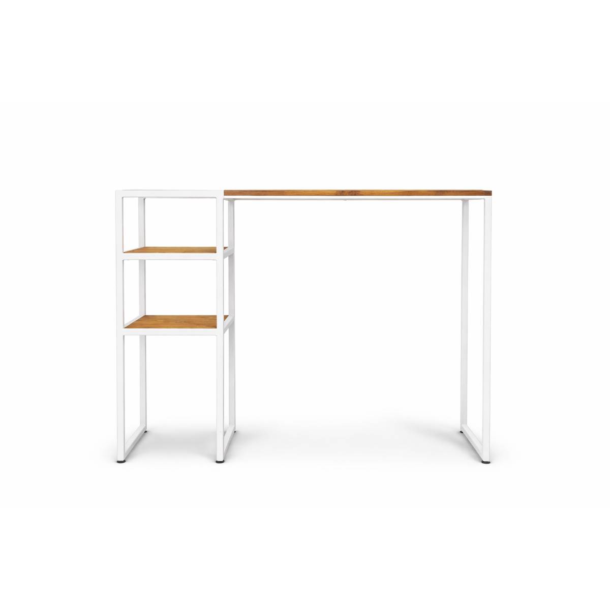 Konsola PIENO to nie tylko blat roboczy. Zintegrowany system bocznych półek to przemyślana strefa ekspozycji: