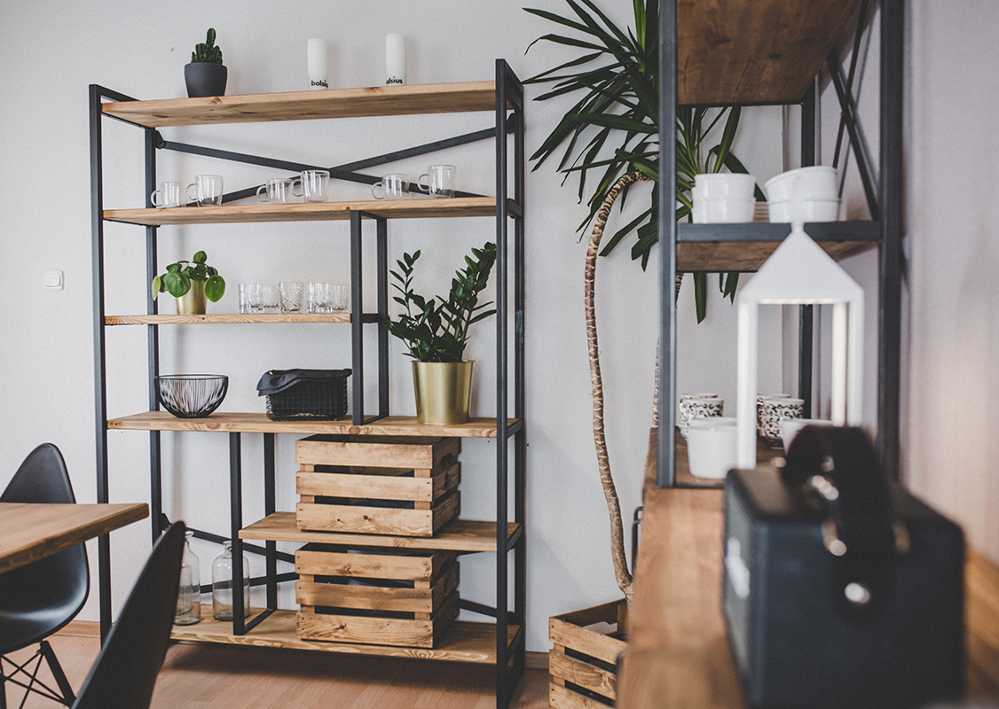 - W sypialni: jako lekka wizualnie, a zarazem solidna konstrukcja na książki i rośliny.